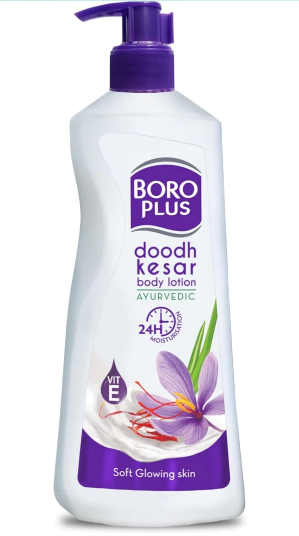 Boroplus Body Lotion Provides 24Hrs Moisturisation 100% Ayurvedic Lotion, Vitamin E For Dry And Normal Skin With Goodness Of Dhoodh, Badam & Kesar, 400Ml